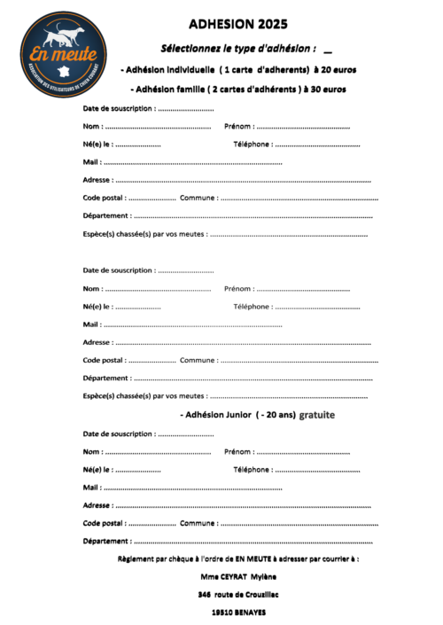 vous pouvez imprimer cette fiche et nous la renvoyer accompagnée du règlement par chèque.